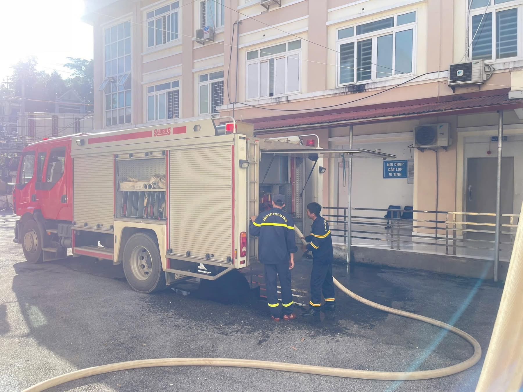 Xe cứu hoả được huy động để cung cấp nước phục vụ cho các hoạt động điều trị, cấp cứu người bệnh. Ảnh: BVCC