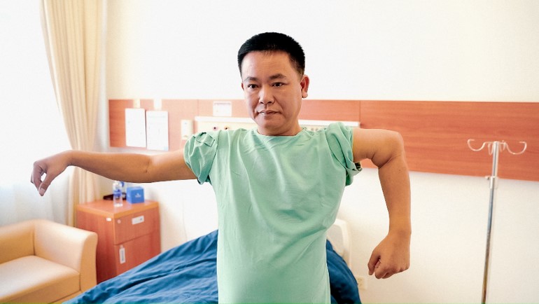 Chỉ 3 ngày sau, bệnh nhân đã có thể cử động tay nhẹ nhàng và sau hai tuần có thể duỗi, gấp khuỷu, dang tay và nâng cánh tay lên cao. Những động tác tưởng chừng rất đơn giản như gội đầu, rửa mặt, chải tóc - điều mà anh không thể làm suốt gần ba thập kỷ - nay có thể thực hiện gần như bình thường bằng chính cánh tay từng biến dạng nặng.