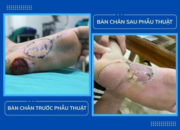 Sau phẫu thuật, người bệnh được theo dõi và chăm sóc hậu phẫu theo đúng phác đồ. Tình trạng sức khỏe ổn định, vùng gót chân tổn thương giảm đau rõ rệt, không còn chảy dịch nhiều như trước. Đặc biệt, khả năng đi lại của người bệnh cải thiện đáng kể so với thời điểm nhập viện.