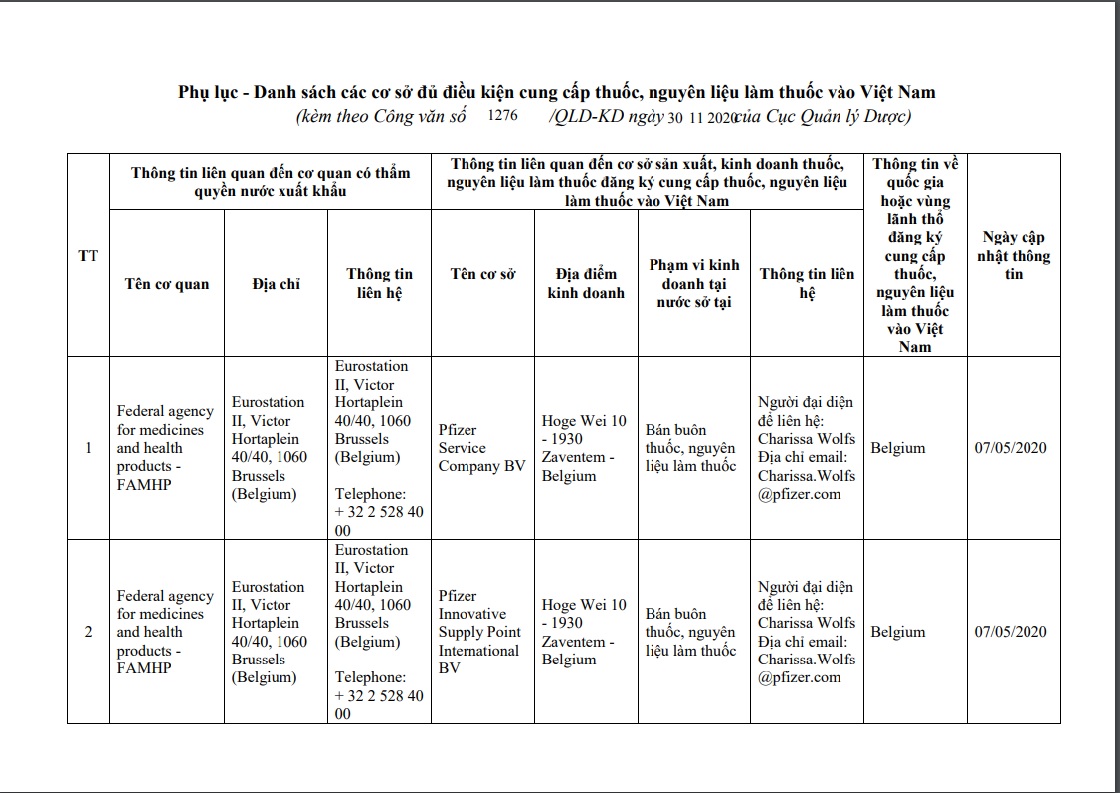 Thứ Tư, ngày 29/04/2020 02:49Danh sách các cơ sở đủ điều kiện cung cấp thuốc, nguyên liệu làm thuốc vào Việt Nam TT Thông tin liên quan đến cơ quan có thẩm quyền...