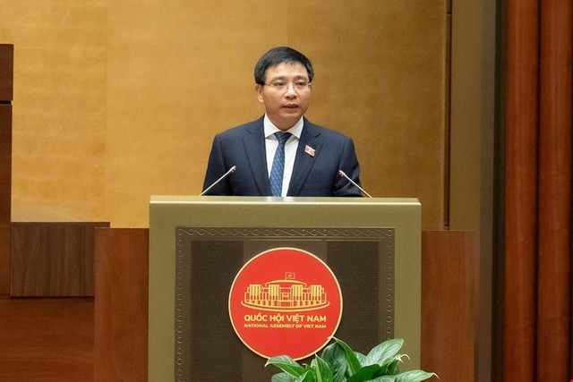 Thừa ủy quyền của Thủ tướng Chính phủ, Bộ trưởng Bộ Tài chính Nguyễn Văn Thắng trình bày báo cáo tiếp thu, chỉnh lý dự thảo luật.