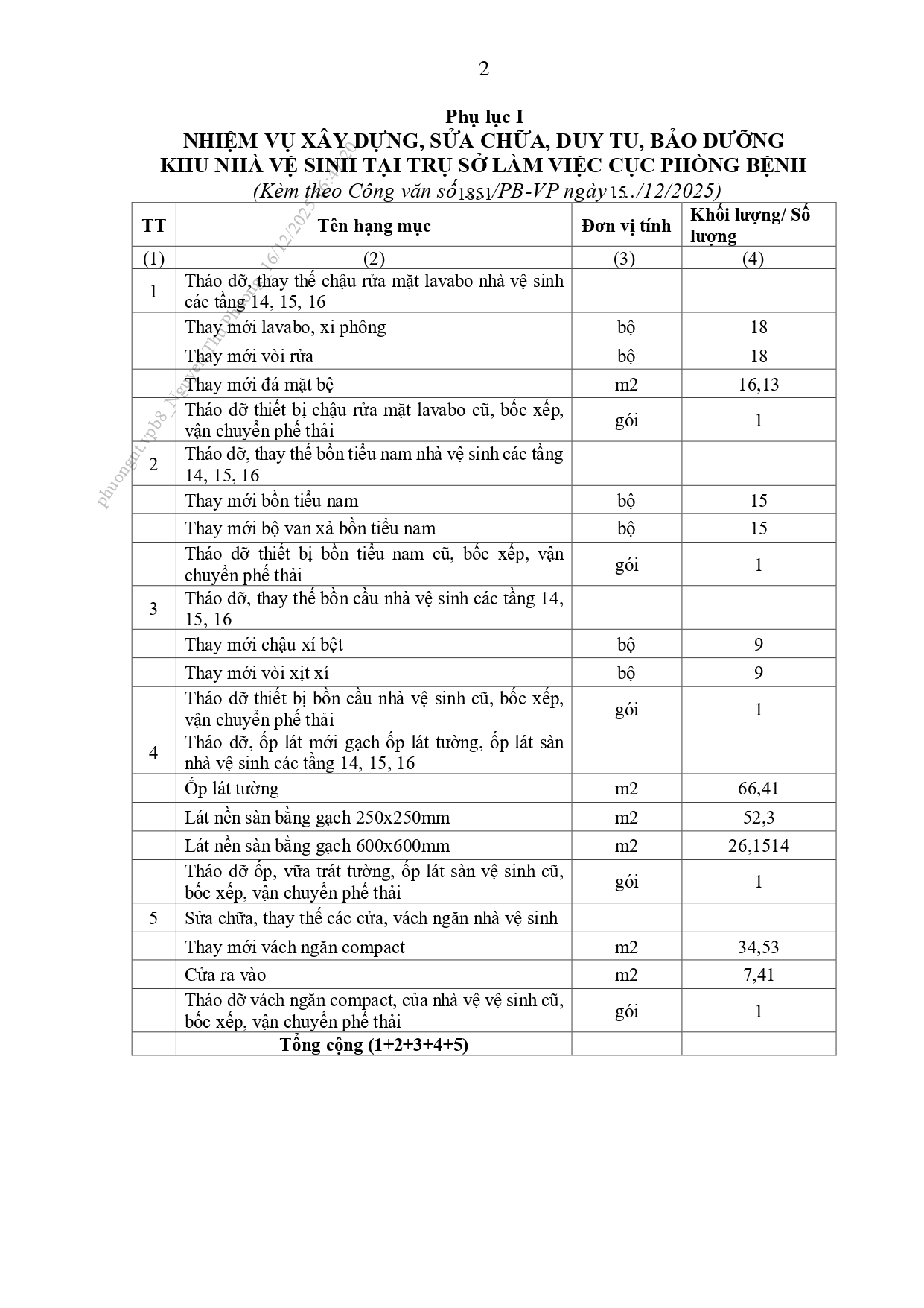 Cục Phòng bệnh mời báo giá xây dựng, sửa chữa, duy tu, bảo dưỡng khu nhà vệ sinh tại trụ sở làm việc Cục Phòng bệnh