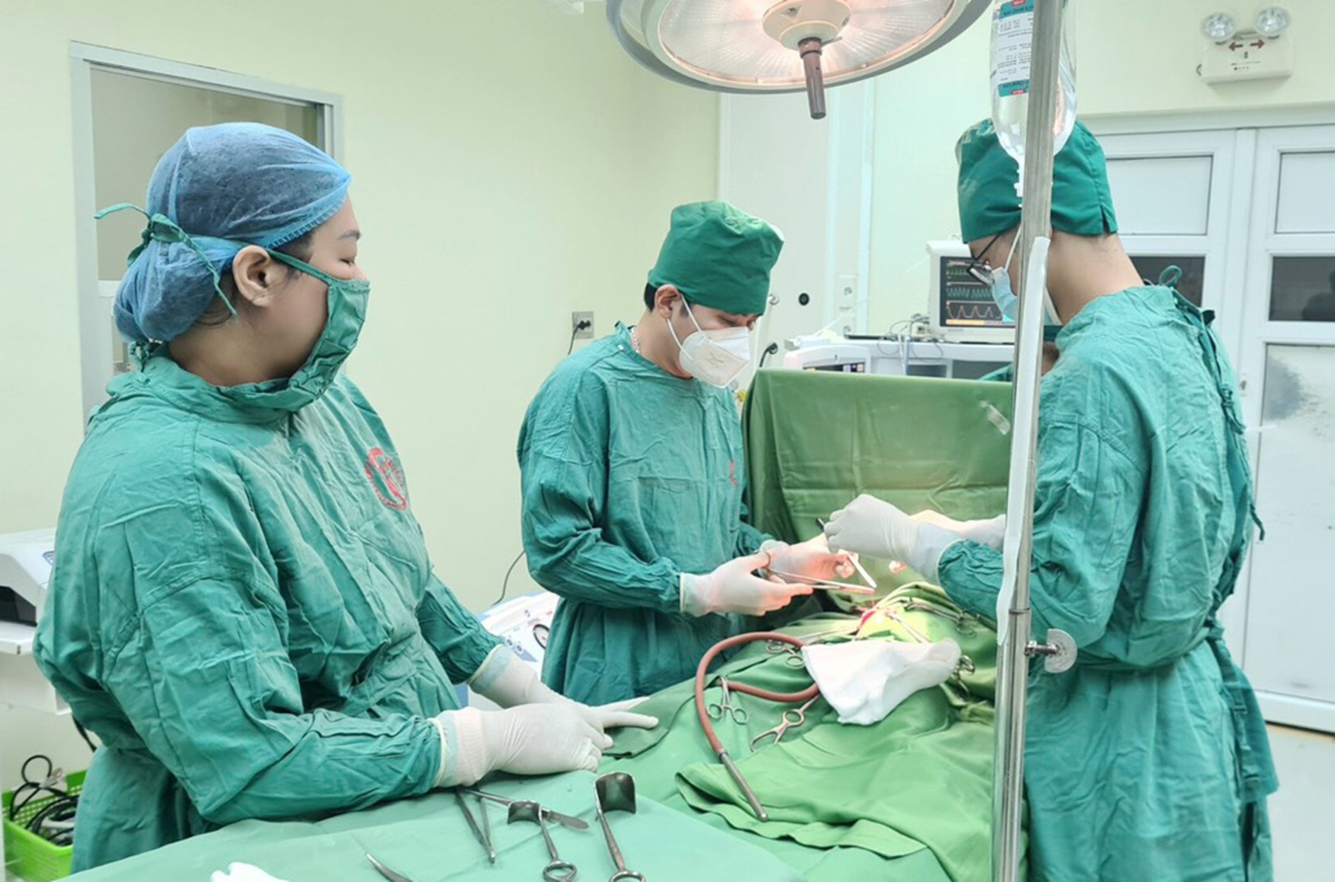 Trước tình huống khẩn cấp, bệnh viện đã kích hoạt báo động đỏ nội viện, huy động e-kíp phẫu thuật cấp cứu, gồm: các bác sĩ chuyên khoa Ngoại tổng hợp, Gây mê hồi sức và Hồi sức tích cực tiến hành can thiệp.