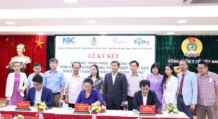 Công đoàn Y tế Việt Nam, Tổng Công ty Cổ phần May Nhà Bè, Báo Phụ nữ Việt Nam, Công ty Cổ phần Big Sky tổ chức lễ ký kết chương trình phúc lợi đoàn viên, phối hợp truyền thông thông điệp 5K “Vì sức khoẻ Việt Nam” và “Bảo vệ Blouse trắng”