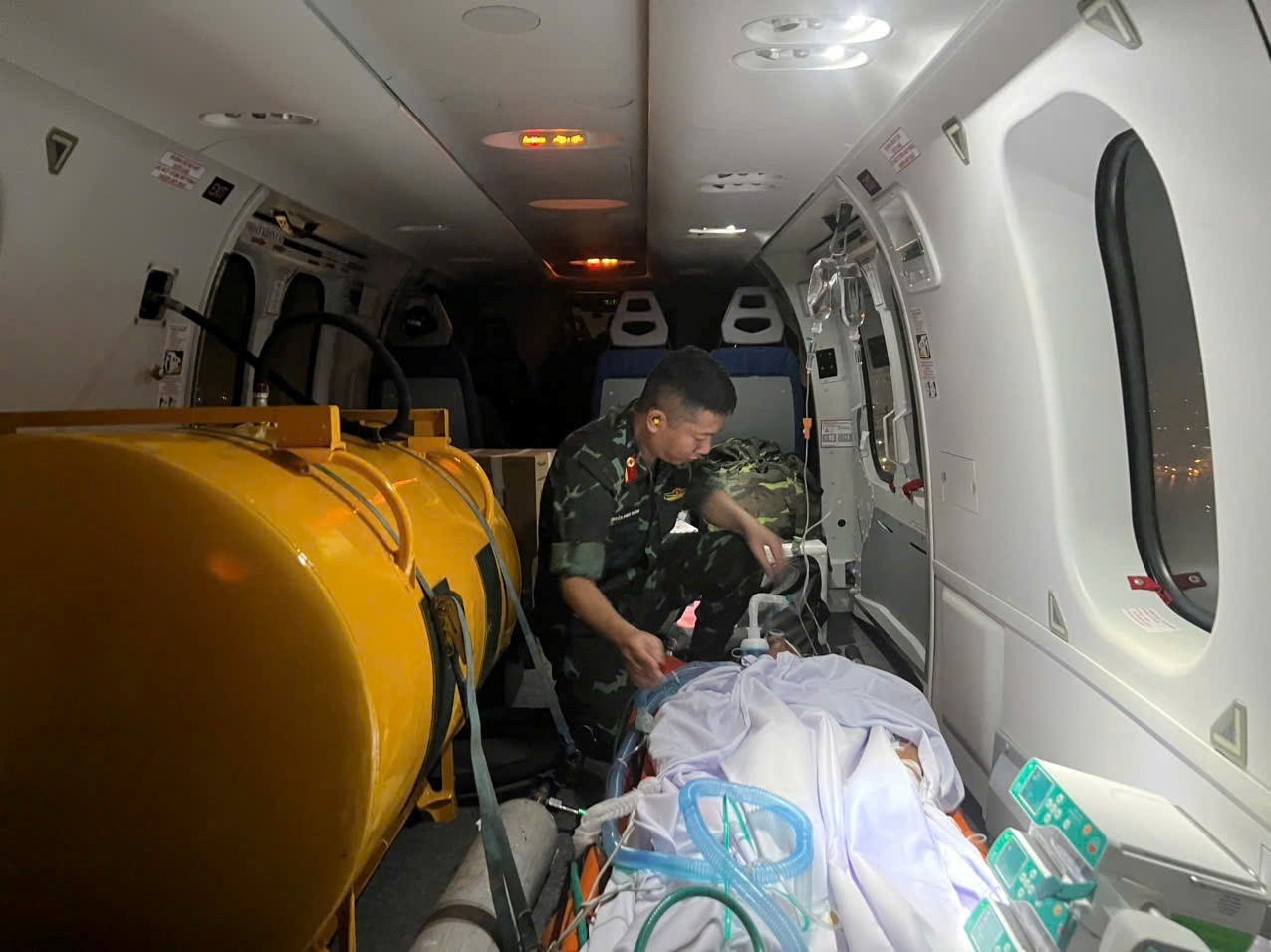 Trong suốt chuyến bay kéo dài hơn ba giờ, hai bác sĩ túc trực liên tục theo dõi chỉ số sinh tồn, truyền dịch, duy trì thở máy và an thần để tránh biến chứng do thay đổi áp suất. 1 giờ 45 phút, rạng sáng sáng 10/11 trực thăng đã đáp an toàn xuống nóc tòa nhà Viện Chấn thương Chỉnh hình của Bệnh viện Quân y 175, bệnh nhân được nhập viện, tiếp tục theo dõi, điều trị chuyên sâu.