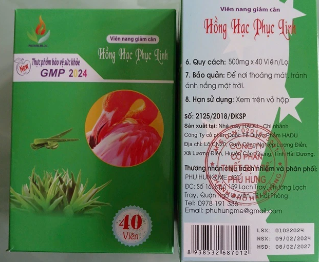 Cục An toàn thực phẩm (Bộ Y tế) cho biết, kết quả kiểm nghiệm thực phẩm bảo vệ sức khỏe Viên nang giảm cân Hồng Hạc Phục Linh có chứa chất cấm.