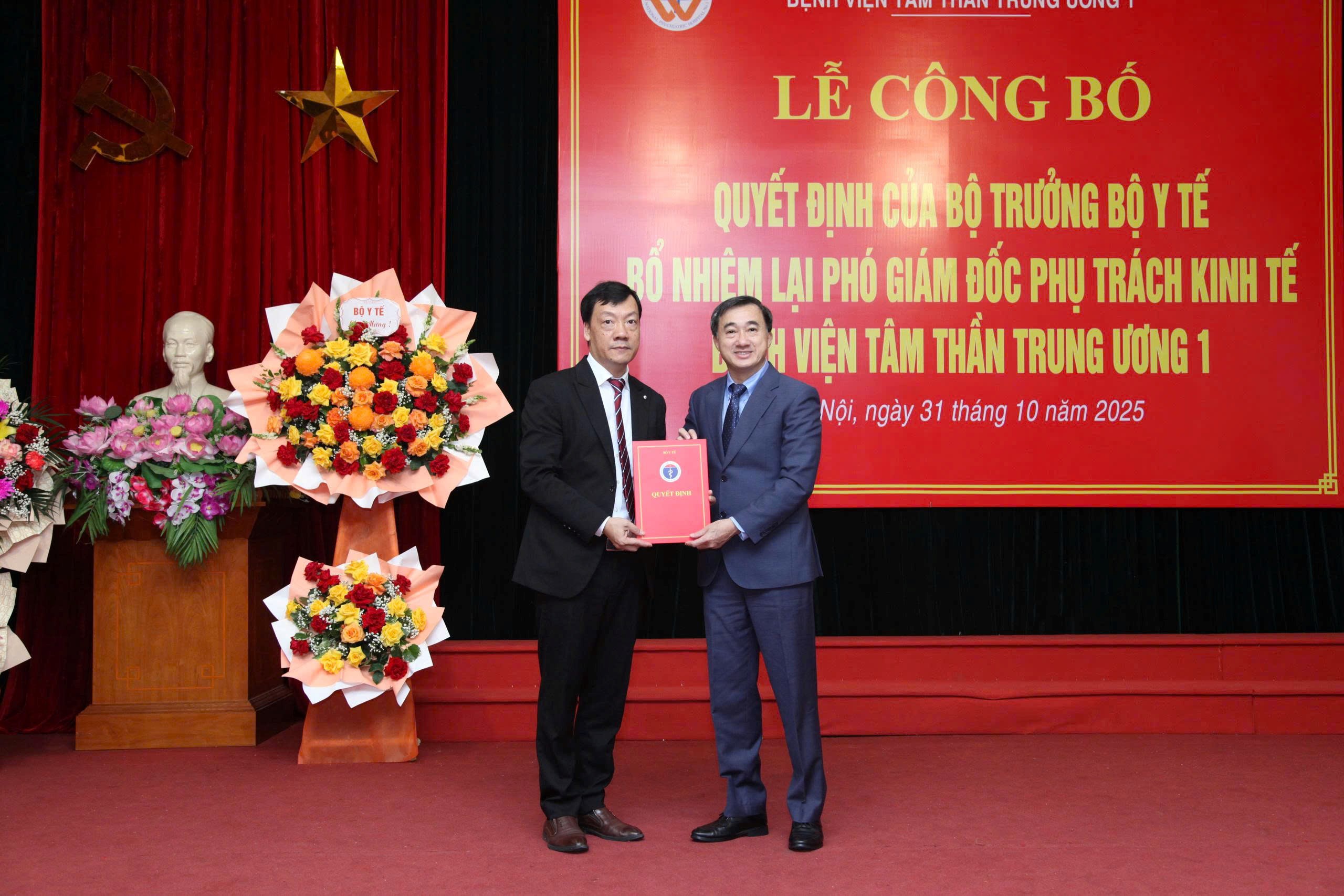 Thứ Sáu, ngày 31/10/2025 01:20Sáng 31/10/2025, Bệnh viện Tâm thần Trung ương 1 tổ chức lễ công bố Quyết định của Bộ trưởng Bộ Y tế về việc bổ nhiệm lại chức vụ Phó Giám đốc phụ trách kinh tế. GS.TS Trần Văn Thuấn, Thứ trưởng...