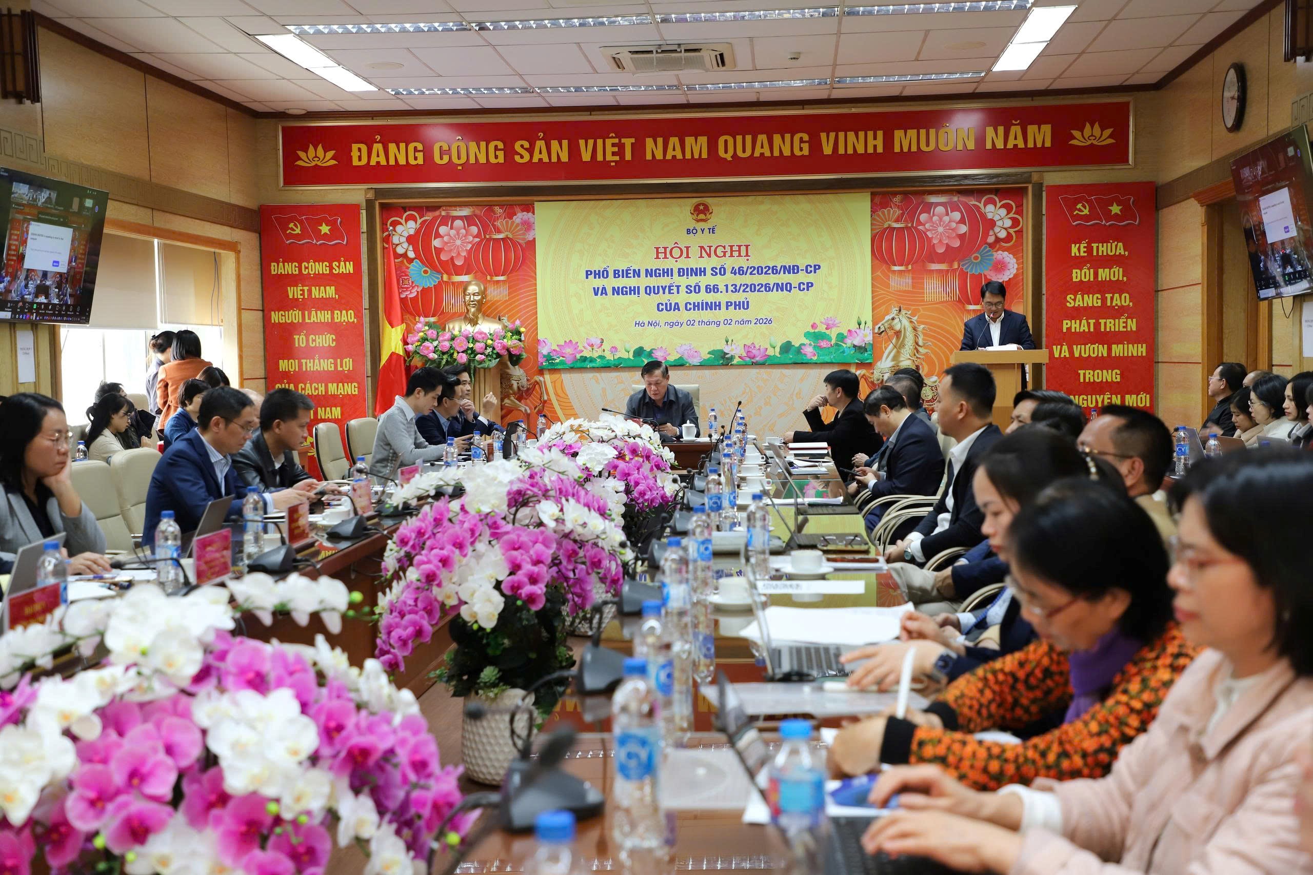 Thứ trưởng Bộ Y tế Đỗ Xuân Tuyên chủ trì Hội nghị phổ biến Nghị định 46/2026/NĐ-CP và Nghị quyết số 66.13/2026/NQ-CP của Chính phủ