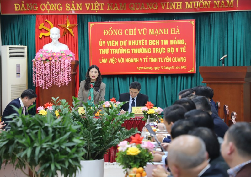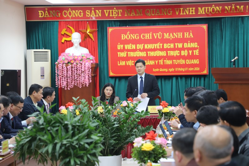 Thứ trưởng Thường trực Bộ Y tế Vũ Mạnh Hà đề nghị các đơn vị chuyên môn thuộc Bộ sớm nghiên cứu, xem xét và phối hợp giải quyết các đề xuất của ngành Y tế Tuyên Quang, hỗ trợ phát huy thế mạnh nguồn dược liệu được trồng và khai thác tại tỉnh, phát triển du lịch gắn với chăm sóc sức khỏe, nhằm tăng cường năng lực y tế địa phương và củng cố hệ thống y tế cơ sở, đáp ứng nhu cầu khám, chữa bệnh của Nhân dân.