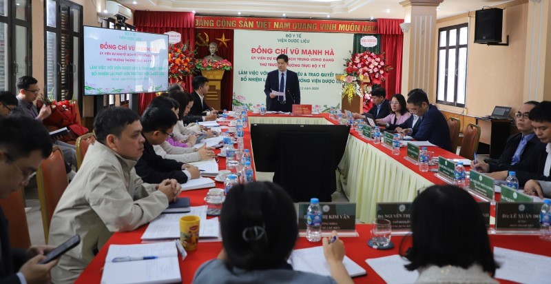 Ngày 15/12/2025, TS.BS Vũ Mạnh Hà, Ủy viên Dự khuyết Trung ương Đảng, Thứ trưởng Thường trực Bộ Y tế làm việc với tập thể cán bộ lãnh đạo chủ chốt Viện Dược liệu về đánh giá kết quả công tác năm 2025, giải pháp thực hiện nhiệm vụ năm 2026.