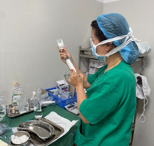 Bác sĩ của Bệnh viện Phụ sản – Nhi Đà Nẵng đang chuẩn bị thuốc để tiêm cho bệnh nhân.